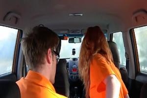 Рыжая красотка превратилась в шалаву и выебал ее учитель вождения в задней части автомобиля